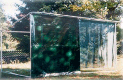 Planenhülle aus hochwertiger stabiler LKW-Plane mit Gurtbändern und Ösen zur Befestigung am Gestell.
